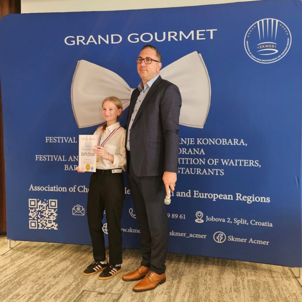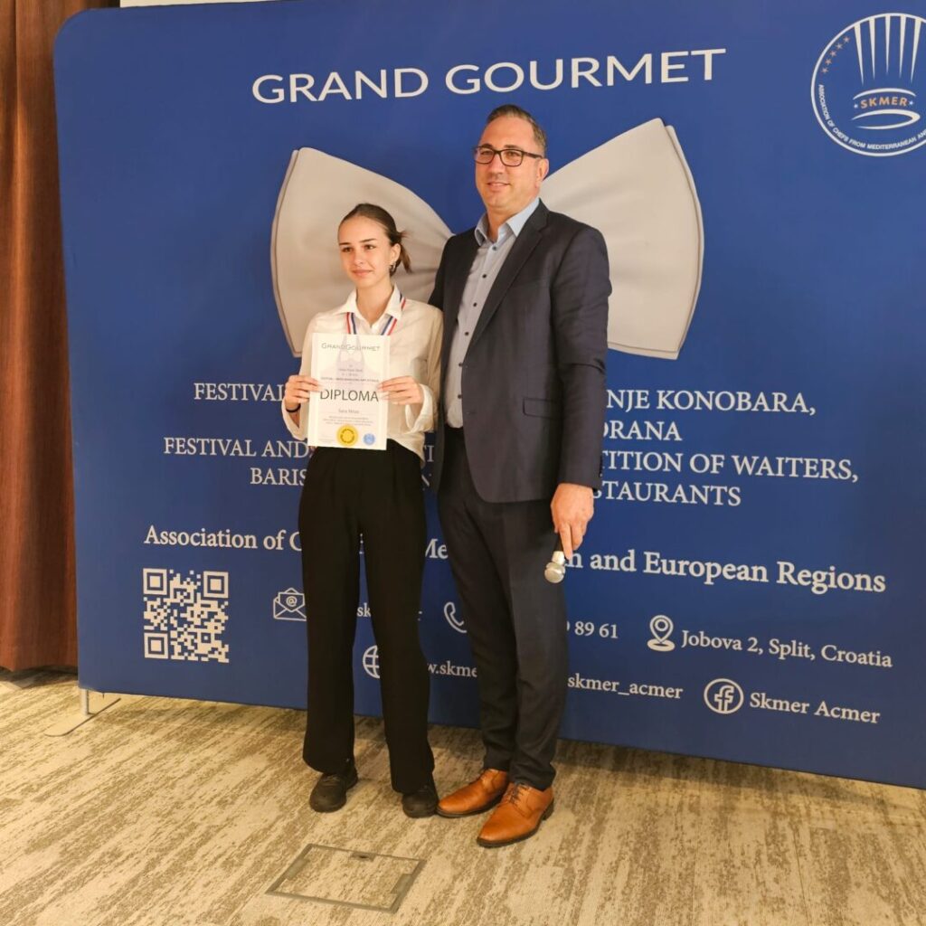 Učenice naše škole Sara Strize i Josipa Ugrina sudjelovale su na 11. natjecanju konobara Grand Gourmet, koje se održalo u Omišu 5. i 6. 11. 2025. godine.