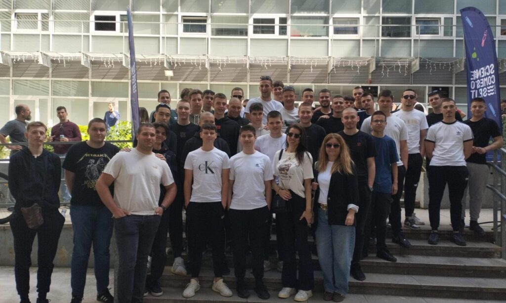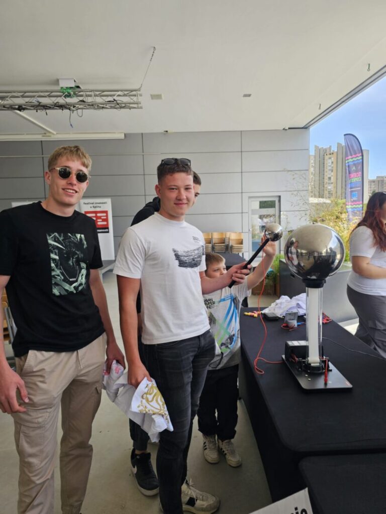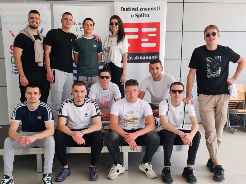 Split, travanj 2026. – Učenici 3.E i 4.E razreda, smjera elektrotehničar,u pratnji svojih nastavnika Ivana Rajčića, Andree Štević i Ane Kljaković-Gašpić sudjelovali su na ovogodišnjem Festivalu znanosti održanom na Sveučilištu u Splitu, gdje su prvi dan festivala proveli u znaku glavne teme ovogodišnjeg izdanja festivala – Energija.
